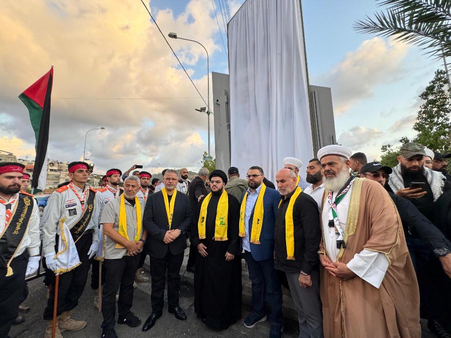وفي الختام ازيحت الستارة عن الجدارية التذكاريةالتي تحمل صورة الشهيدين السيديننصر الله وصفي الدين , وقد كتب عليها "اننا على العهد" ووضع اكاليل من الزهر وقسم الولاء لسيد الشهداء.