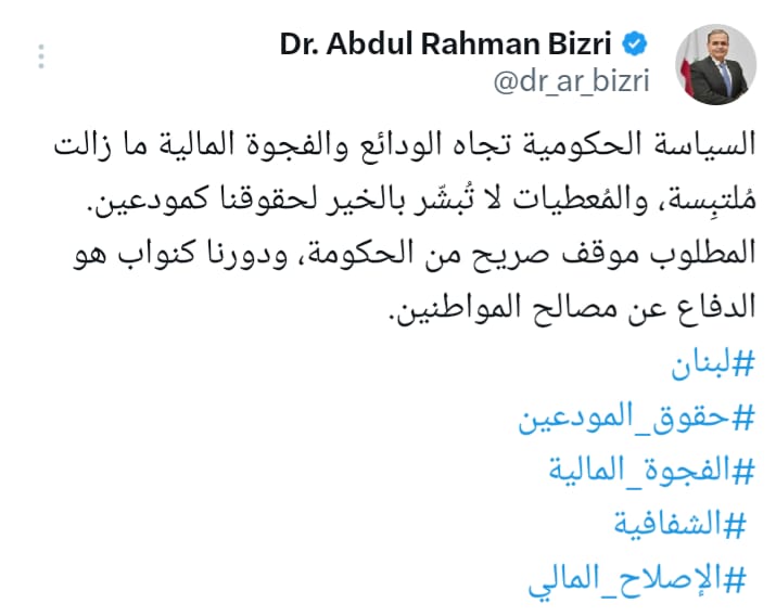 نشر النائب الدكتور عبد الرحمن البزري عبر حسابه على منصة "أكس":