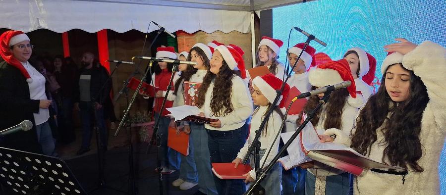 ثم قدمت جوقة مدرسة الفنون الإنجيلية الوطنية للبنات والبنين في صيدا ترانيم ميلادية، فيما قدمت  المعلمة بيترا منصور والطالبة سهاد جرادي أغنيات ميلادية من وحي المناسبة.