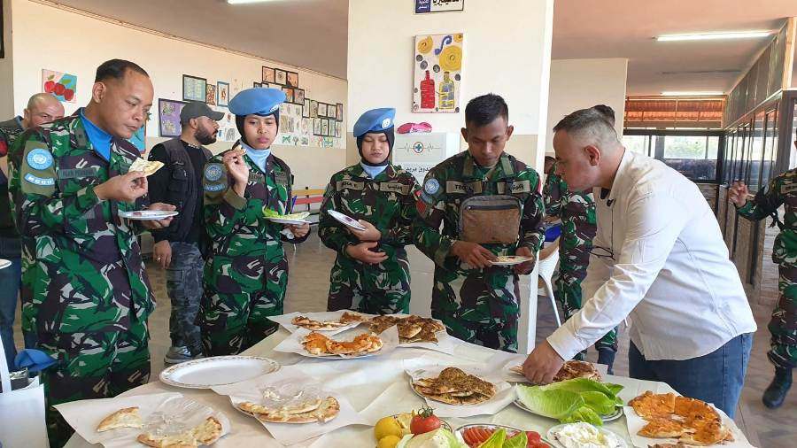وفي ختام الجولة ، وتكريمًا لهم استضافت الثانوية ضباط وجنود اليونيفيل الزائرين على وجبة فطور شارك خلالها المقدم مانغلافيتي شخصيًا في تحضير أرغفة الخبز الطازجة في فرن المدرسة.غادر بعدها الوفد الدولي حاملين معهم ذكرى يوم مميز أمضوه في رحاب " السفير " وتاركين لدى أسرة الثانوية طلابًا وأساتذة وإدارةً شعورًا غامرًا بالاعتزاز بهذا النهار الذي تشاركوا فيه مع أصحاب القبعات الزرقاء خبز الفرح والسلام.