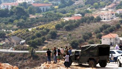 الصورة : جنود لبنانيون ومواطنون يرصدون من خلف الخط الأزرق الحدودي، الحركة في الجهة المقابلة داخل المستوطنات الإسرائيلية. (أ ف ب)