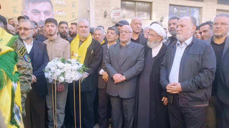 وكان تشييع جثمان الشهيد قد انطلق من أمام منزله في بلدة جباع في إقليم التفاح وجاب شوارع البلده باتجاه الحسينية حيث أقيمت أمام ساحتها في وسط البلده مراسم التشييع بحضور ممثل رئيس مجلس النواب نبيه بري النائب هاني قبيسي وعدد من الوزراء والنواب الحاليين والسابقين ورؤساء وممثلي الأحزاب اللبنانية والفصائل الفلسطينية وحشد من المشيعين .