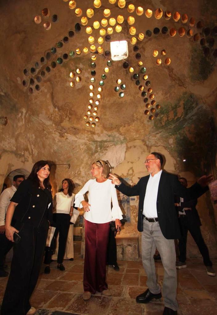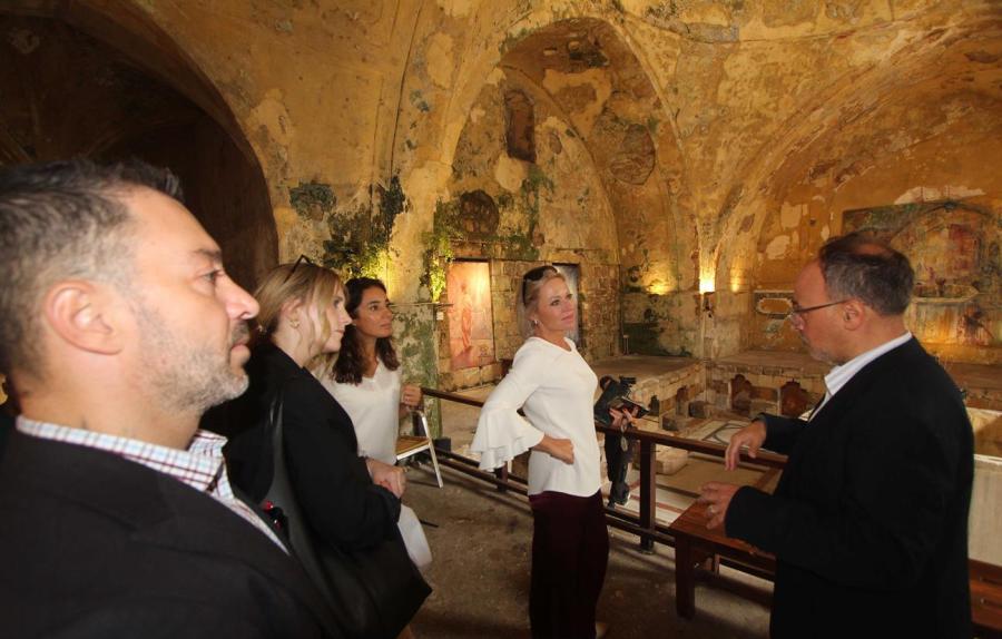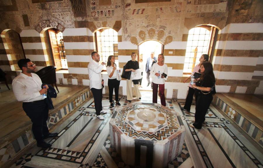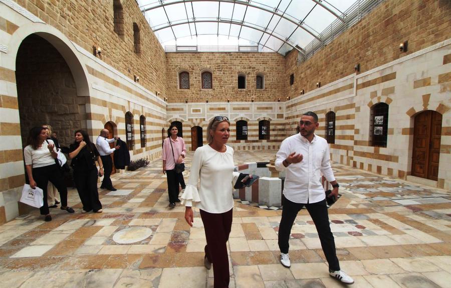 كما زارت خان الإفرنج الذي تشرف عليه مؤسسة الحريري وجالت في باحته وقاعاته وممراته ، واستمعت الى نبذة عن تاريخ بنائه واهميته الاقتصادية والحضارية والثقافية وما مر عليه من احداث وصولا الى إعادة ترميمه من قبل مؤسسة الحريري وتحويله مركز نشاط سياحي وتفاعل ثقافي وتراثي وتنموي .