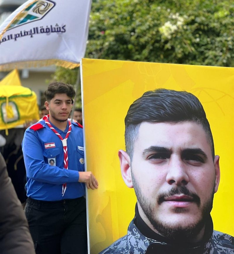 جثمان الفقيد لف براية "حزب الله" حمله ثلة من قادة "كشافة الإمام المهدي(عج)" من أمام منزله في تعمير عين الحلوة في صيدا حيث اقيم له تشييع شعبي, تقدمه عضو المكتب السياسي ل"حركة أمل" المهندس بسام كجك ومسؤول قطاع صيدا في "حزب الله" الشيخ زيد ضاهر ولفيف من العلماء وشخصيات سياسية وحزبية وفعاليات اجتماعية لبنانية وفلسطينية ومخاتير .