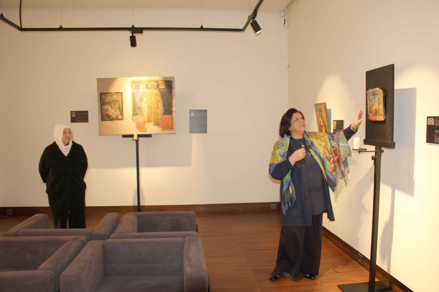 وكان في استقبال السيدة الحريري مديرة المتحف السيدة ألفت البابا ، حيث جالت برفقتها في المعرض الذي يضم ستين أيقونة بيزنطية وملكية، قامت بترميمها الفنانة التشكيلية لينا كيليكيان، بدعم من "مؤسسة الحريري" وضمن مشروع ترميم كاتدرائية القديس نيقولاوس الأثرية والذي نفذته المؤسسة بهبة من الرئيس سعد الحريري، حيث تم ايداع هذه الأيقونات مؤقتاً في متحف قصر دبانة ريثما يتم نقلها الى الكاتدرائية .