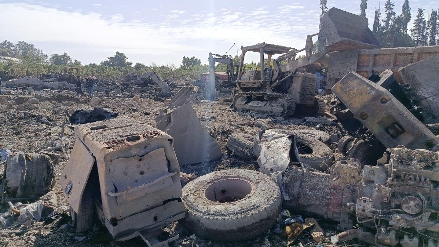 نحو عشرة صواريخ ثقيلة سقطت على هذا التجمع , احدثت حفراً ضخمة وارتجاجات وصل صدى الغارات الى صيدا وكانت كفيلة بالحاق الخسائر الجسيمة والبالغة قدرت باكثر من خمسة ملايين دولار اميركي ..وحوّلت هذا المجمع من الاليات الى مجرد خردة...
