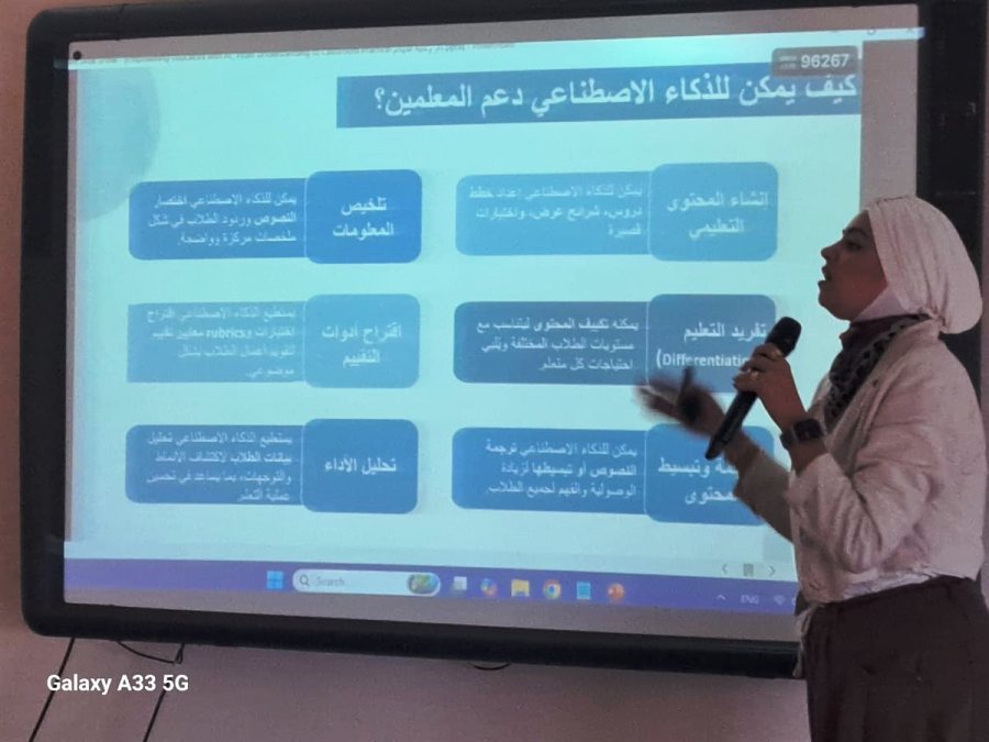 هدفت الورشة لتعريف المعلّمين والإداريين بمجموعة من الأدوات العملية للذكاء الإصطناعي التوليدي، وتسليط الضوء على كيفية توظيفها في تطوير العملية التعليمية.