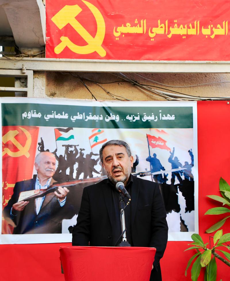 احيا "الحزب الديمقراطي الشعبي" ذكرى رحيل مؤسسه نزيه حمزة بمهرجان خطابي في صيدا ، بحضور ممثلين عن الاحزاب والقوى الوطنية والاسلامية والفصائل الفلسطينية وفعاليات وطنية ونقابيّة وإجتماعية وحشد من المدعوين .