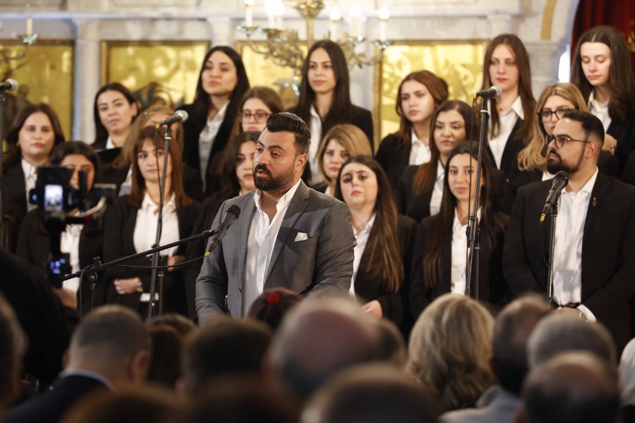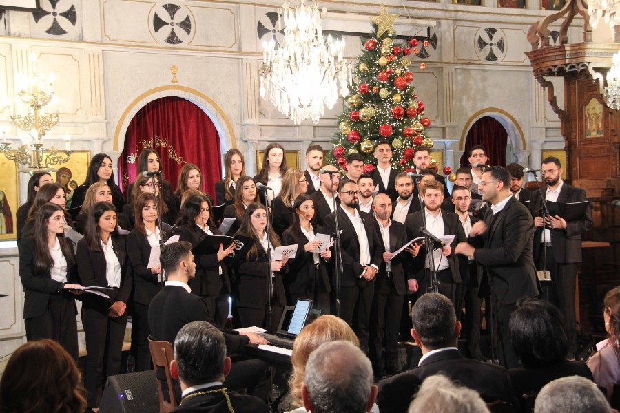 بعد ذلك قدمت جوقة " وتر " باقة من الأغنيات والترتيل الميلادية التي عاش معها الحضور أجواء مفعمة بفرح الميلاد وما يحمله من معاني المحبة والسلام. كما قدمت الجوقة ترتيلة خاصة بعنوان" دقت جراس الكنايس".