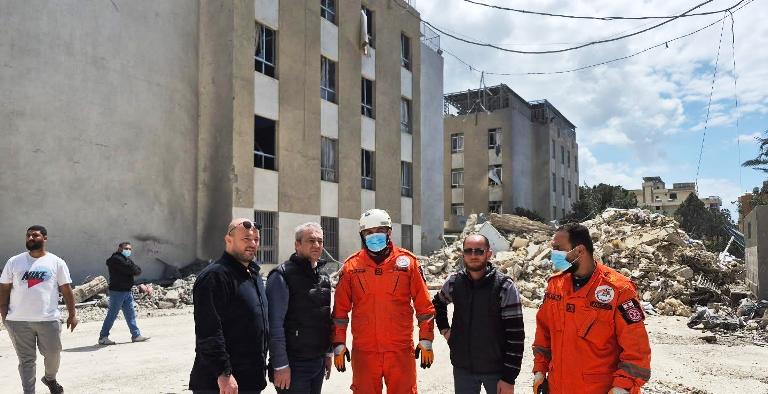 الوفد عاين الأضرار الجسيمة التي لحقت بالمنشآت المدنية والمدارس والجامعات المحيطة ب"المجمع"، والتي تأثرت بشكل مباشر جراء قوة الانفجار، كما تفقد المباني والشقق السكنية التابعة للمواطنين في المنطقة المحيطة، والتي تعرضت لتصدعات وأضرار مادية كبيرة. كما اطلع الوفد البلدي من فرق الانقاذ على عمليات رفع الأنقاض .